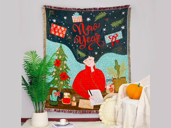 普段使いに加え、結婚式のウェルカムスペース用として、オリジナルイラストでお願いしました。小ロットやタイトな納期にも快く対応してくださり、やりとりも終始丁寧でスムーズ。おかげさまで、式まで余裕をもって受け取ることができました。1枚からジャガードブランケットを作れる貴重さに出会え、また新しいものを作ってみたくなりました。